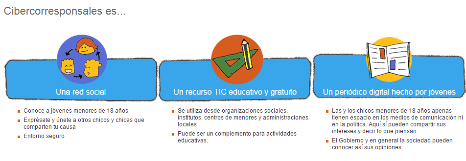 Cibercorresponsales es un programa de la Plataforma de Infancia para la promoción de los derechos de infancia, una red de blogs y red social de chicos y chicas menores de 18 años que le cuentan al mundo lo que piensan, lo que sienten, lo que les preocupa o lo que quieren cambiar, la idea es que puedan expresar sus opiniones y que éstas sean tomadas en cuenta